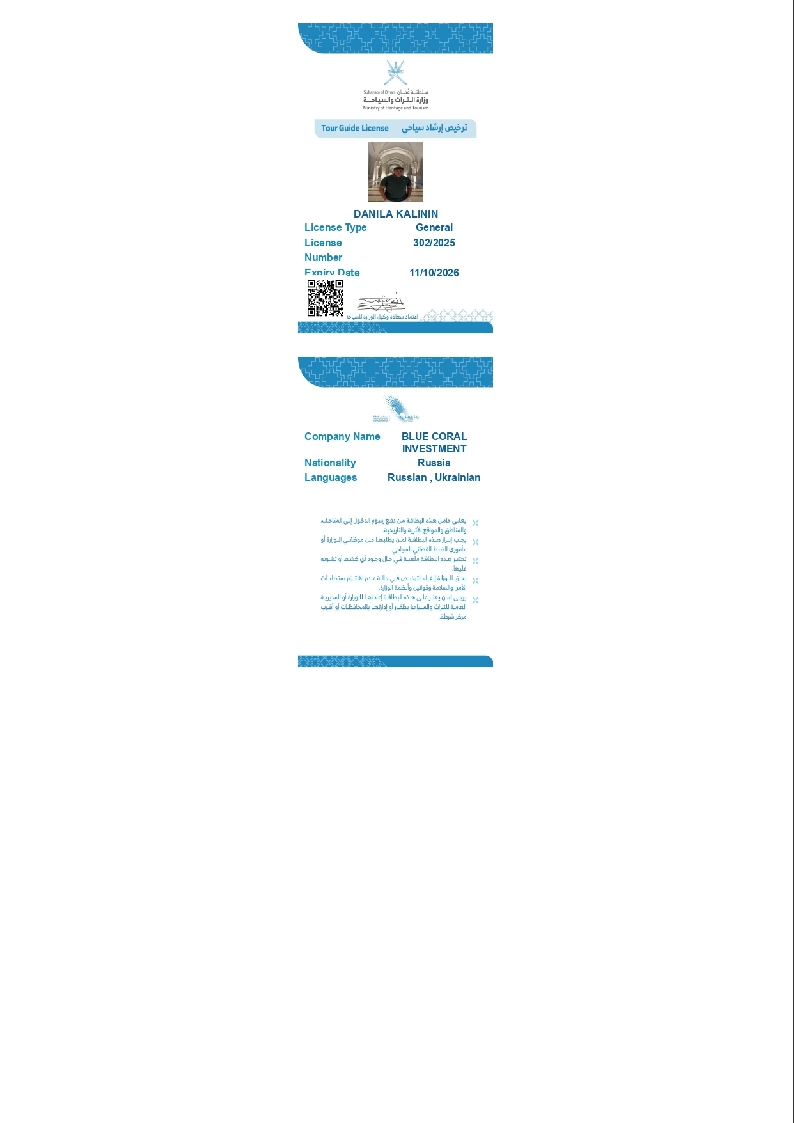Приветствую всех путешественников, ищущих незабываемые приключения в живописном Омане! Меня зовут Данила, и я экскурсионный гид, готовый провести вас по этой удивительной стране. Оман — это истинное сокровище на Ближнем Востоке, с его богатой историей, культурным наследием и захватывающей природой. Мне невероятно везёт, потому что я могу делиться всем этим с вами, путешественниками. Мой профессиональный опыт и страсть к истории и культуре Омана помогут вам раскрыть эту уникальную страну. Я уверен, что каждая моя экскурсия будет полна интересных фактов и удивительных историй. Путешествуя со мной, вы окунетесь в атмосферу духовности великолепных мечетей, нежности и гостеприимства местных жителей, а также проявления силы природы, которую можно найти в прекрасной пустыне, восхитительных оазисах и на великолепных пляжах. Я всегда готов подстроиться под ваши интересы и предпочтения, чтобы сделать экскурсию максимально увлекательной и насыщенной.